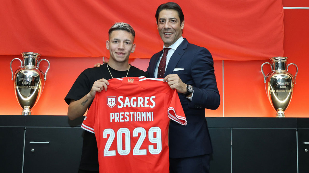“O avançado Prestianni, de 18 anos, é reforço da equipa de futebol profissional do Sport Lisboa e Benfica. O argentino chega ao clube proveniente do Vélez Sarsfield e assinou um contrato válido até 2029, tornando-se o novo dono da camisola com o número 25”, informou o Benfica em comunicado.