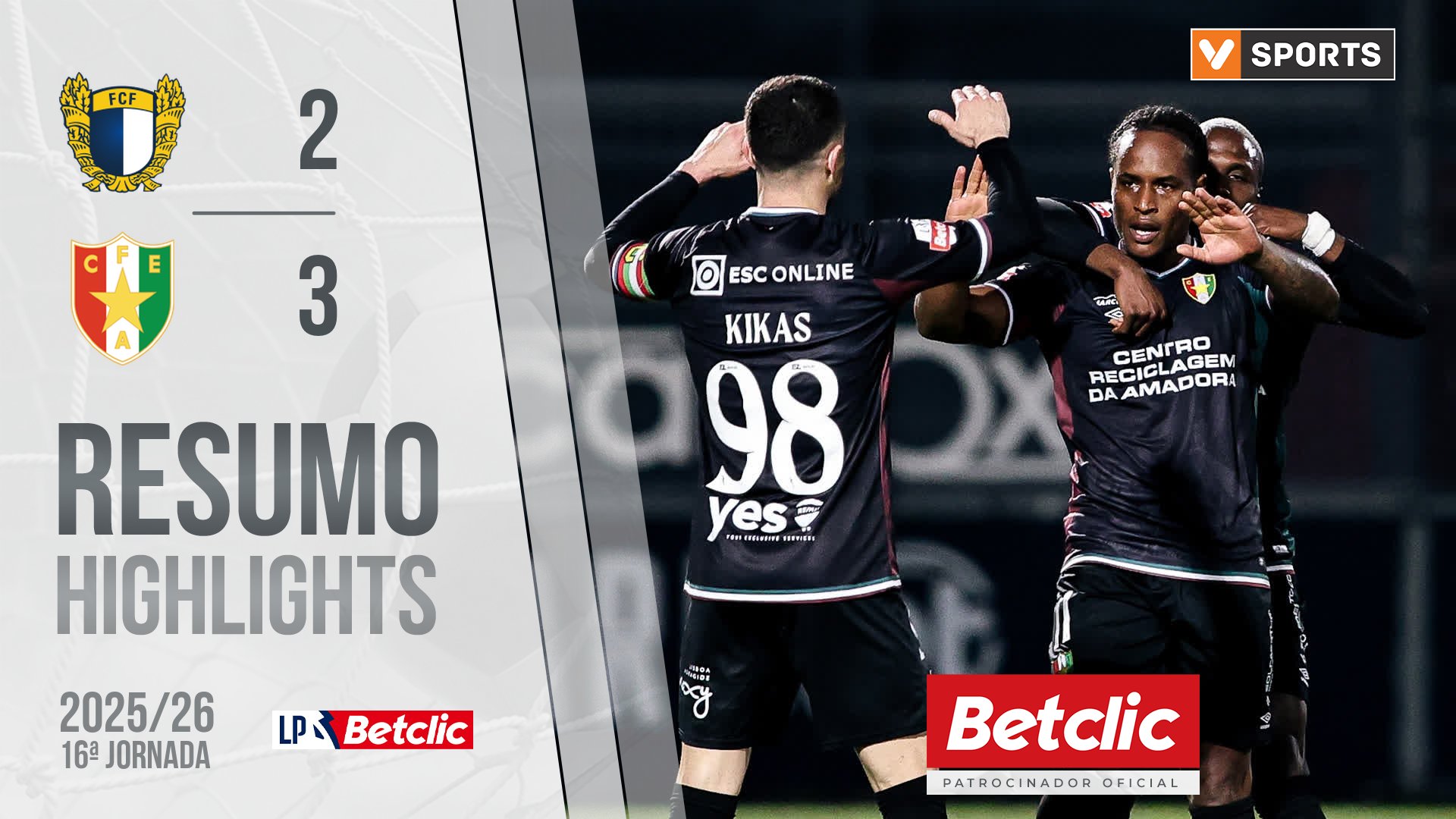 Termina a partida com o Estrela da Amadora a levar os três pontos do terreno do Famalicão, após vencer por 3-2, em jogo da 16.ª jornada da Liga Portugal Betclic. Kikas (10') e Jovane Cabral (24' e 51') marcaram os golos do Estrela, enquanto Luan Patrick (8' p.b.) e Sorriso (27') foram os autores dos tentos famalicenses.