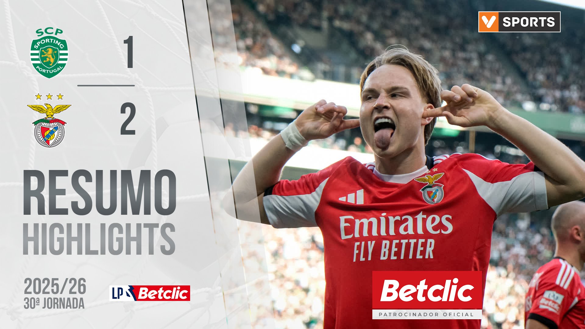 Termina a partida em Alvalade. O Benfica vence o Sporting, por 2-1, em jogo da 30.ª jornada da Liga Portugal Betclic. Schjelderup (27') e Rafa (93') marcaram pelas águias, Morita (72') apontou o tento dos leões.